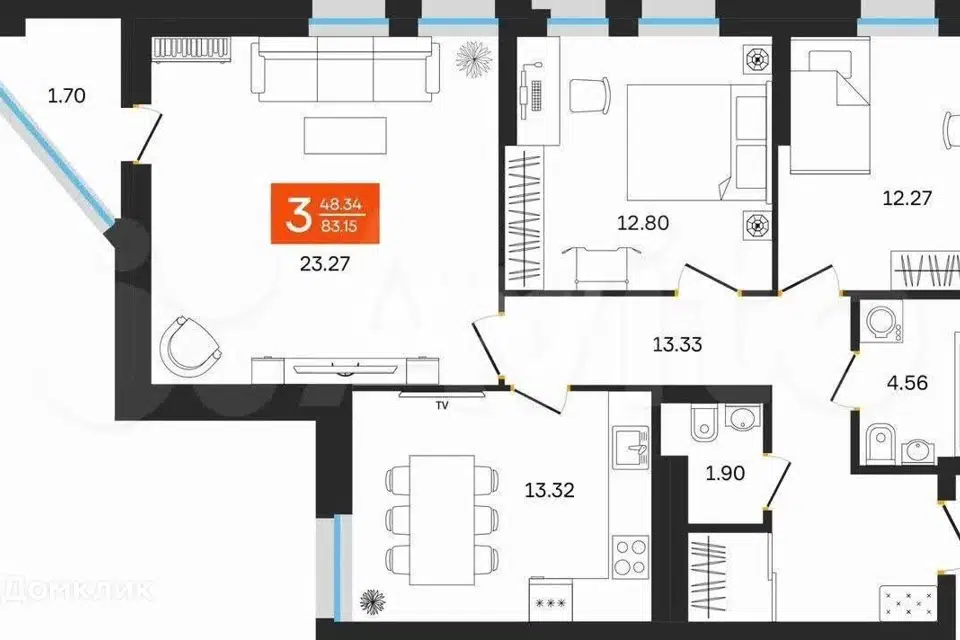 3-комн. кв., 69.74 м², 19/27 этаж