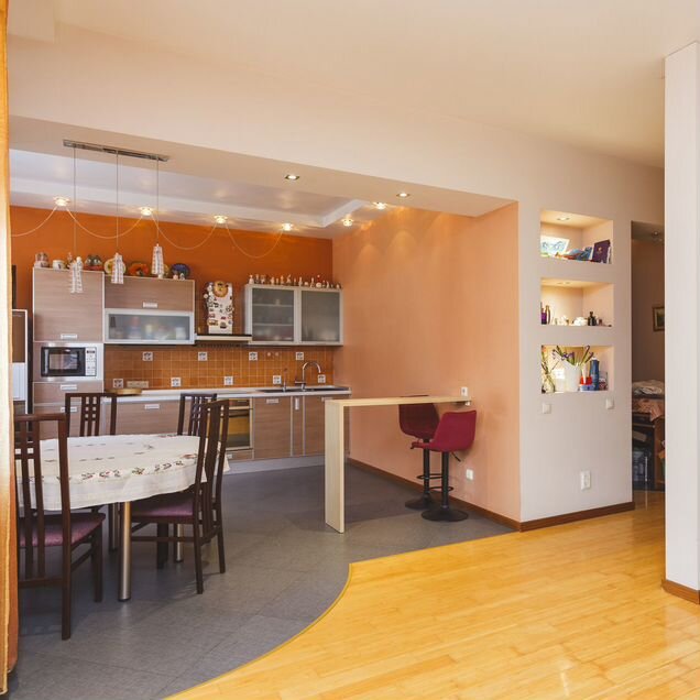Пространство квартиры продумано до мелочей: жилая площадь составляет комфортные 65 квадратных метров, а кухня занимает 9.6 квадратных метров, предоставляя достаточно места как для приготовления вкусных блюд, так и для семейных ужинов.