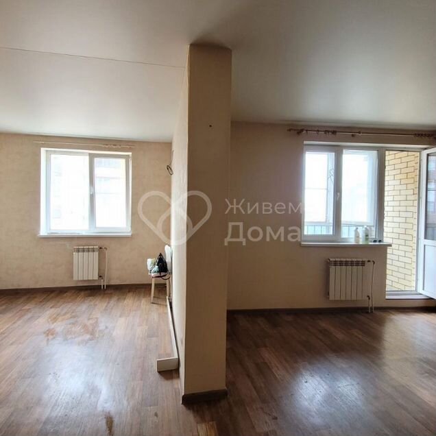 Комната очень удачной планировки и, благодаря выходу на балкон, имеет дополнительное естественное освещение и делится на 2 жилые зоны естественным образом: вы можете организовать зону сна и жилую зону.