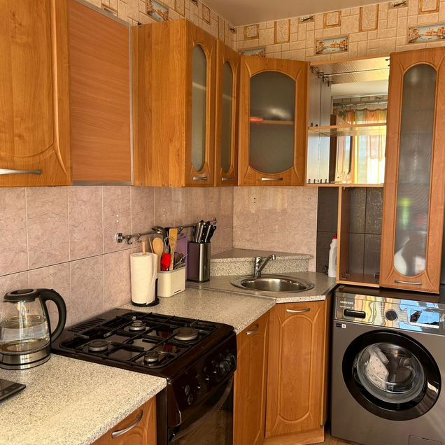 При продаже остается: кухонный гарнитур, газовая плита, шкаф