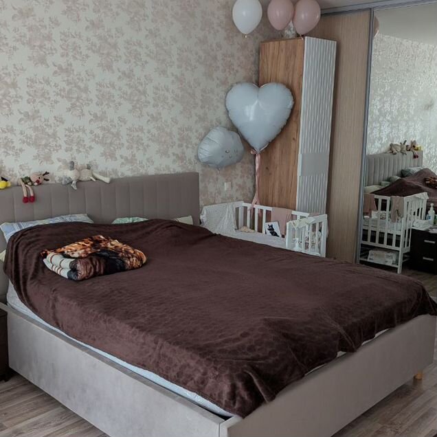 Квартира полностью с ремонтом, в комнате на полу ламинат, на стенах обои под покраску — легко освежить интерьер.