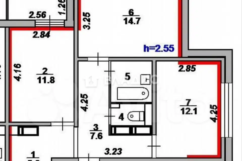 3-комн. кв., 65 м², 6/7 этаж