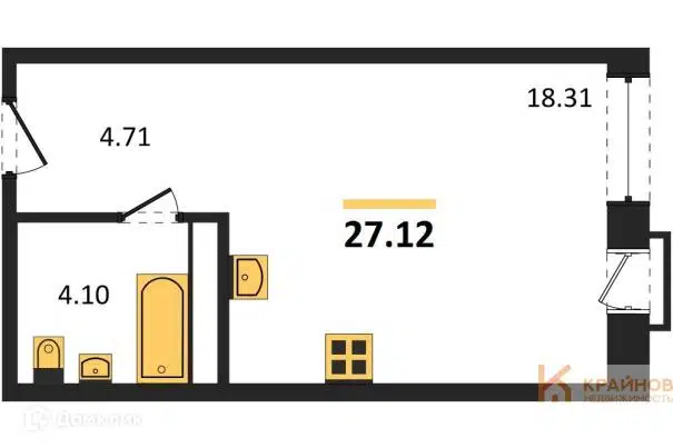 Студия, 27.12 м², 10/21 этаж