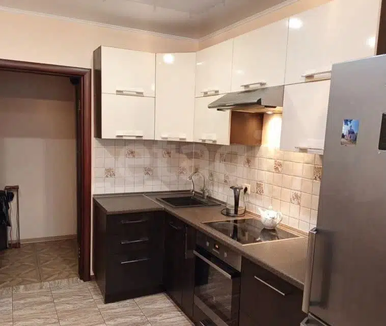 6. В квартире остаётся хороший кухонный гарнитур с электроплитой и вытяжкой, холодильник, стиральная машина, большой телевизор и вся мебель.