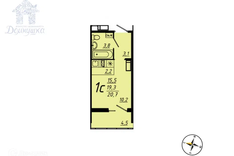 Студия, 16.8 м², 4/9 этаж
