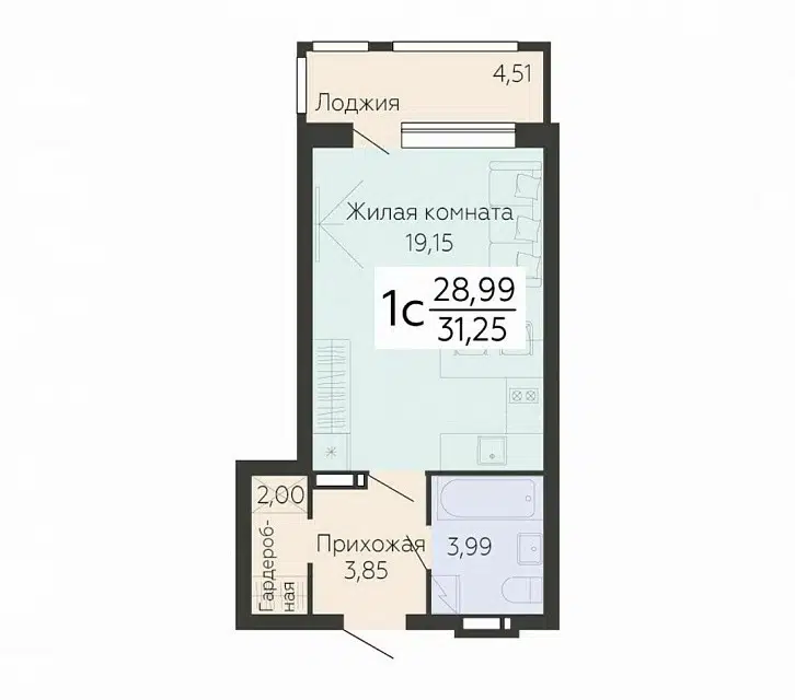 Студия, 31.3 м², 5/14 этаж