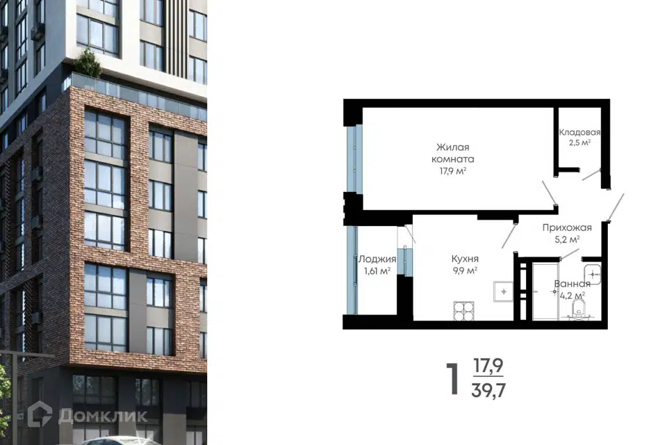1-комн. кв., 39.7 м², 12/15 этаж