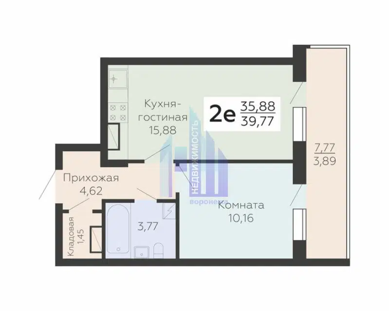 2-комн. кв., 39.77 м², 19/19 этаж