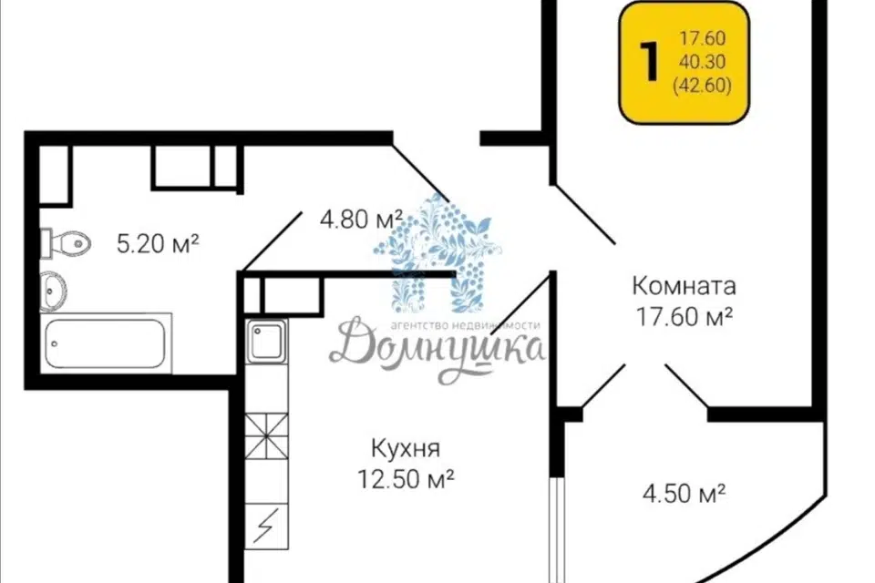 2-комн. кв., 42.8 м², 2/9 этаж