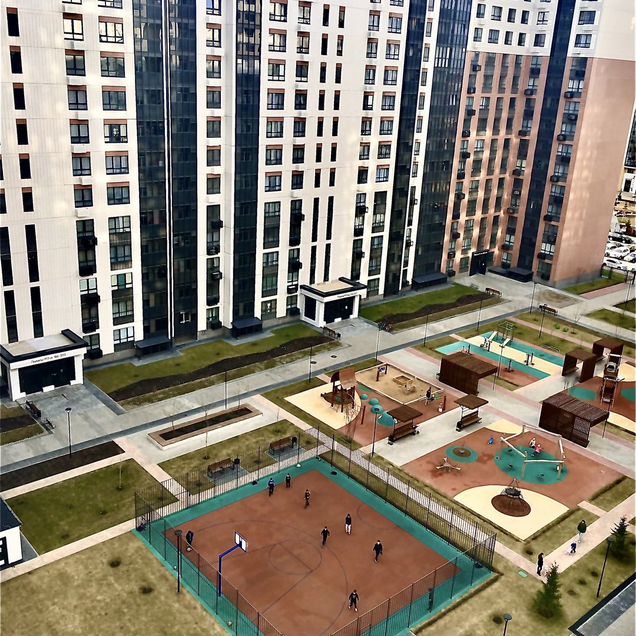 Жилой комплекс сделан по принципу Город в городев шаговой доступности вся совместная инфраструктура (магазины,пункты выдачи,фитнес,спортивные площадки,на территории находится фонтан.