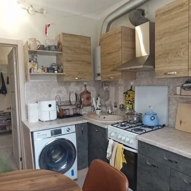 Кухня оборудована мойкой; есть газовая плита, холодильник, стиральная машина. Установлена газовая колонка, что обеспечивает бесперебойное горячее водоснабжение.