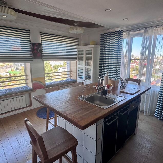 Просторная кухня-гостиная: эпицентр стиля и комфорта Сердце квартиры — это масштабная кухня-гостиная, объединенная в единое светлое пространство. Здесь все продумано для жизни высшего класса: Встроенная техника от ведущих европейских брендов удовлетворит потребности самого взыскательного шефа.