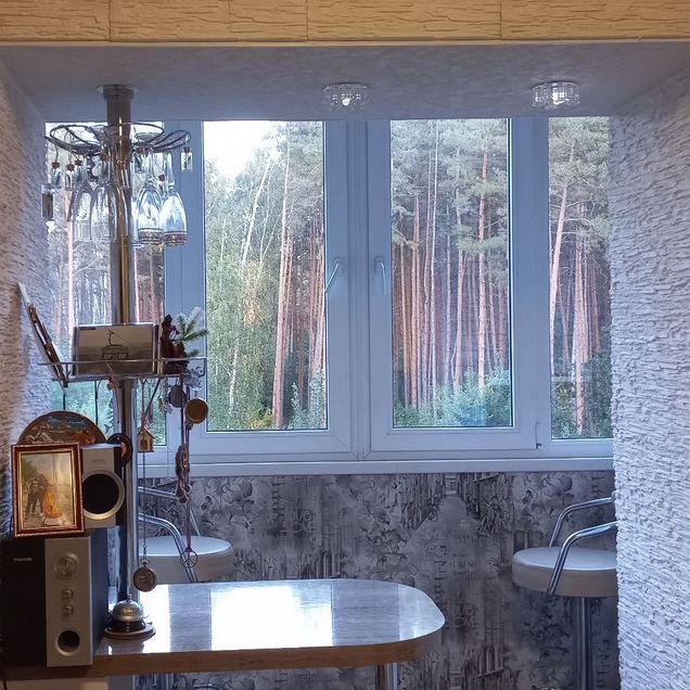 Балкон остеклен пластиковым окном с тройным стеклопакетом. Утеплены стены и пол. (Зимой можно не закрывать дверь)