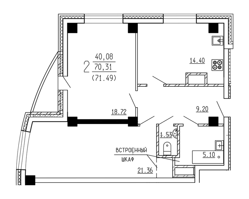 2-комн. кв., 71.9 м², 4/19 этаж