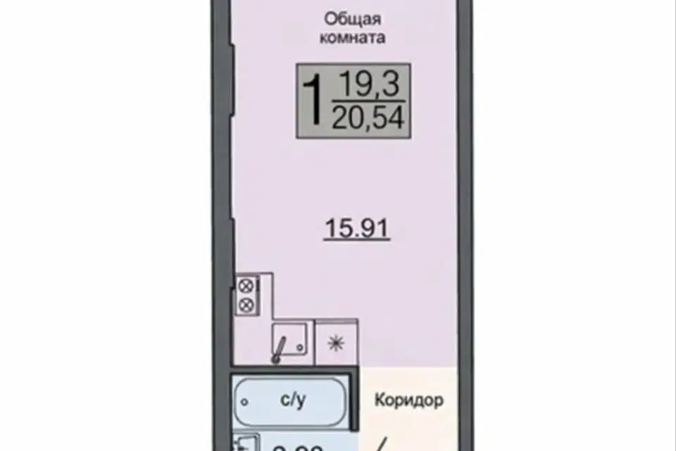 Студия, 19.3 м², 4/18 этаж