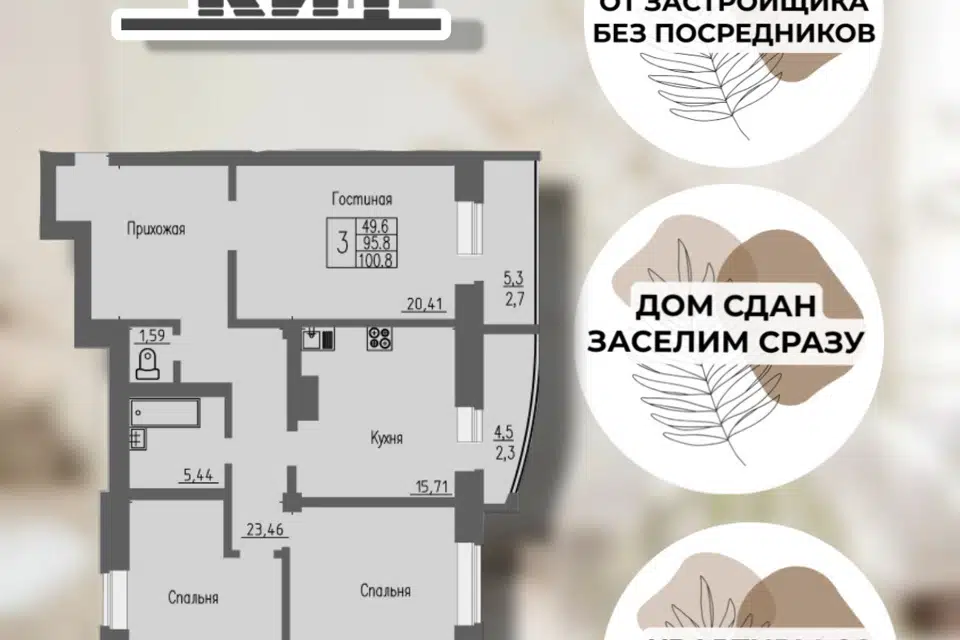 3-комн. кв., 100.3 м², 6/16 этаж