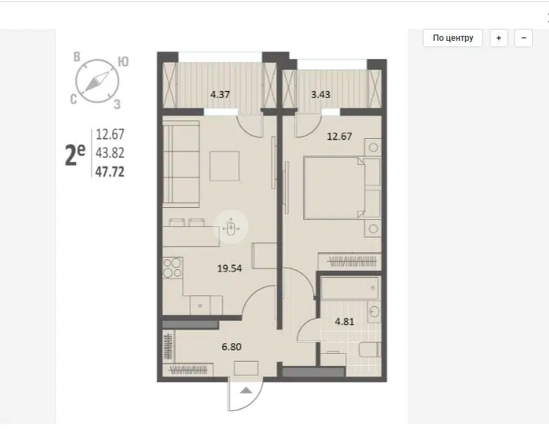 1-комн. кв., 42.3 м², 24/25 этаж