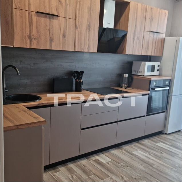 В квартире остается кухонный гарнитур, встроенная плита и вытяжка. Остальную мебель и технику можно обсуждать дополнительно.