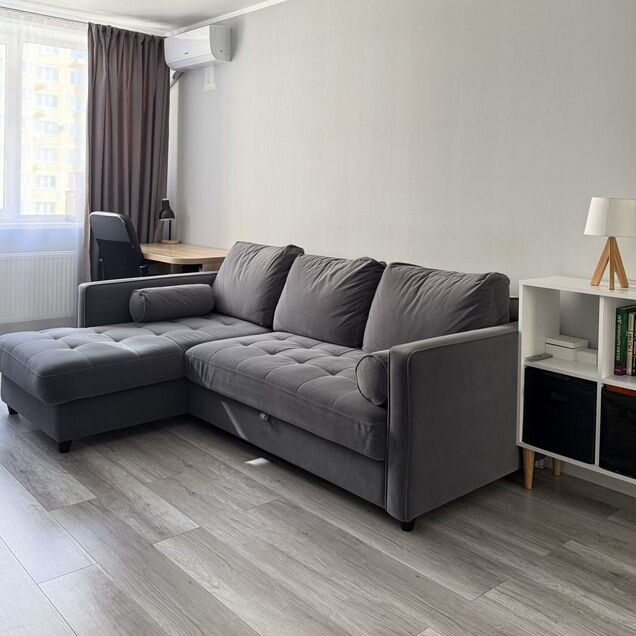 Однокомнатная квартира на среднем этаже в престижном районе левого берега предлагает выгодное сочетание городского комфорта и спокойной жилой среды. Объект полностью меблирован. Планировка эффективно использует пространство, создавая комфортные условия для проживания.