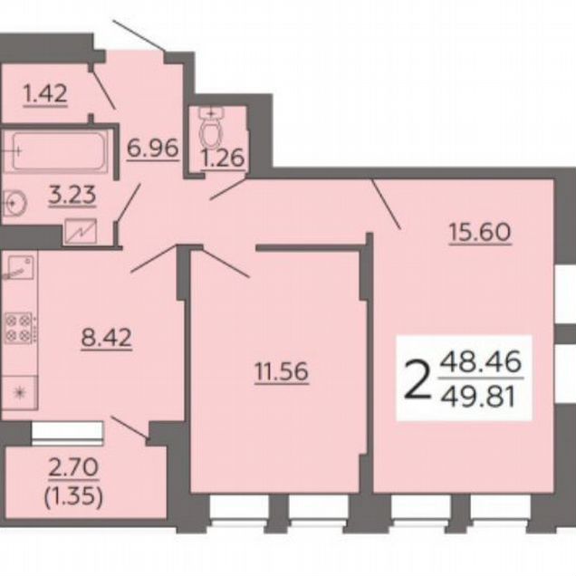 2-комн. кв., 46 м², 6/9 этаж