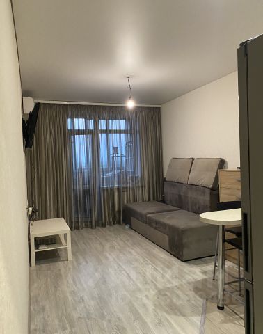 Студия 22,6 кв.м плюс большой балкон 4 кв.м . Стеклопакет на балконе заменен на пластиковой. Светлая чистая студия. Кондиционер, стиралка, холодильник, тв, микроволновка, духовой, плита, чайник, вытяжка. Из мебели: кухня, диван, комод, стулья, журнальный столик, шкафы для хранения.