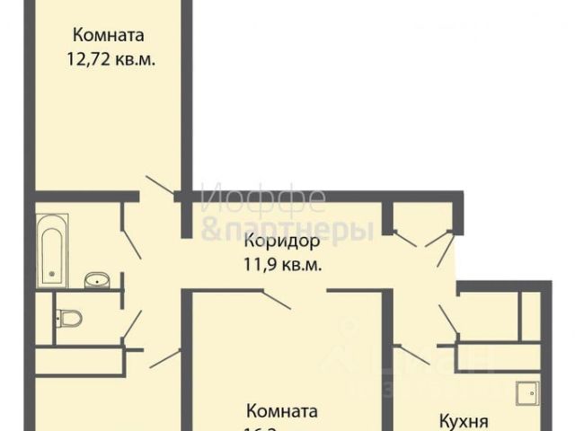 3-комн. кв., 57 м², 4/9 этаж