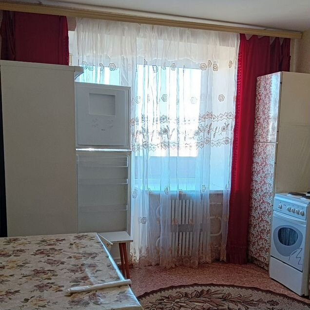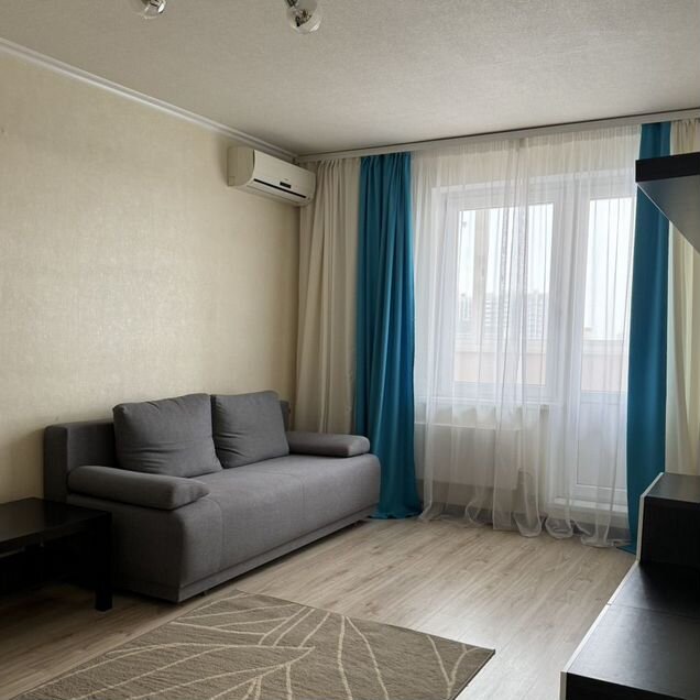 В квартире есть все необходимое для комфортного проживания. Выполнен косметический ремонт, мебель размещена в комнате. Из техники — кондиционер, холодильник и стиральная машина. Ванная комната оборудована ванной. Также в квартире есть лоджия, где можно организовать зону отдыха или рабочее пространство.