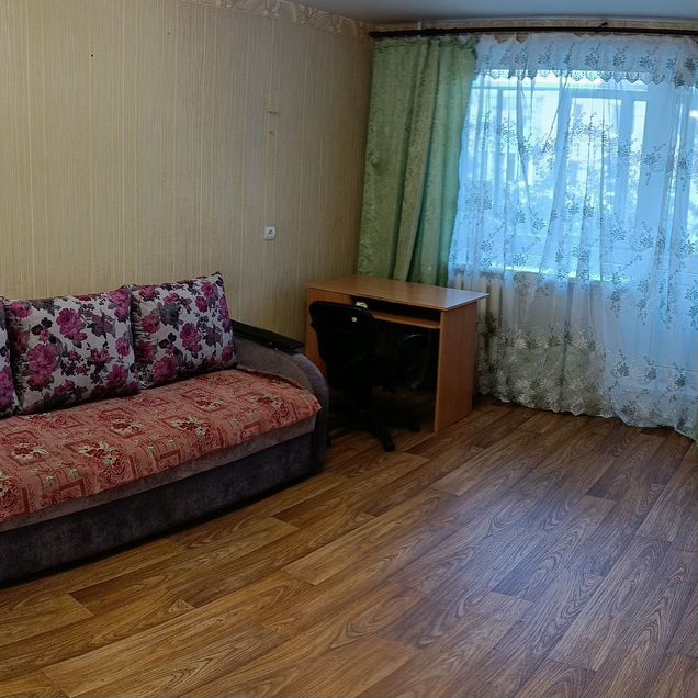 Однокомнатная квартира. Тихий двор, благоустроенная, есть все для проживания: кухня оборудована полностью. Стиральная машина малютка, балкон (застеклён), шкаф, софа, кресло, стол. Рядом удобная конечная остановка транспорта. Спальное место одно!