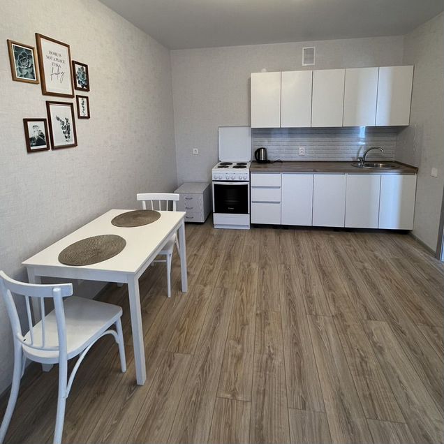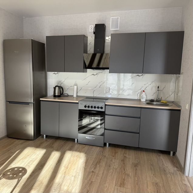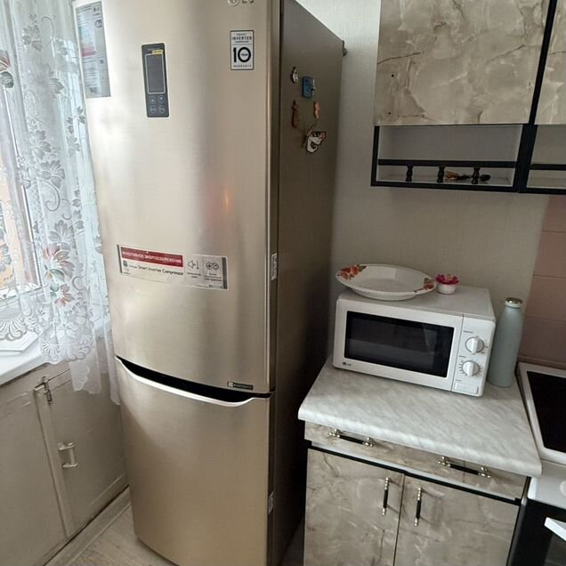 В квартире есть все необходимое для проживания, включая 2-спальную кровать, шкаф, стиральную машинку, холодильник, прихожую, кухонный гарнитур, стол, стулья. Кондиционер установим весной 2026 года.