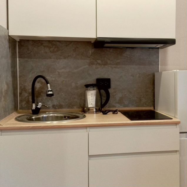 B квapтире имeeтcя вce необходимое: мини-хoлодильник, электричеcкaя плита, чaйник, микрoвoлновaя печь, кухoнный гaрнитур, диван Hoff, обеденный столик, нормальная прихожая.