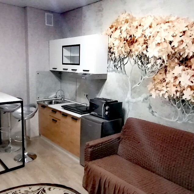 Сдаётся квартира — студия с отличным ремонтом, в безопасном обжитом районе города, маршрутки в любую часть города, неподалёку торговый центр, скверы, павильоны, маркетплейсы, мини-рынок, от остановки 1 минута.