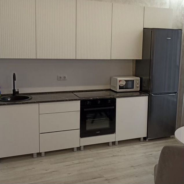 - Современный кухонный гарнитур с необходимой бытовой техникой (холодильник, микроволновая печь);